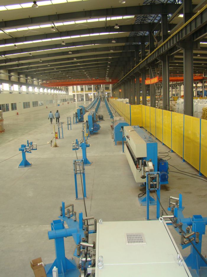 本生產(chǎn)線為氮?dú)饨宦?lián)、水冷卻方式干法交聯(lián)生產(chǎn)線,適用于生產(chǎn)6-35kV,絕緣厚度在12mm以下,電壓等級交聯(lián)聚乙烯絕緣電力電纜的纜芯。